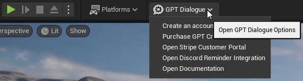 In the editor toolbar look for "GPT Dialogue" and click the button to get a drop down of options.