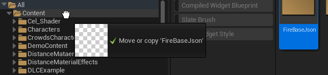 Now go to your FirebaseJson folder you created in step 2 and paste it in there, you must paste it from windows explorer, not unreal engine since unreal engine does not recongize json files natively.