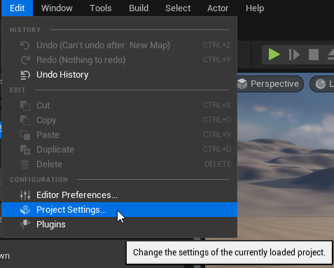 To package the json with our game, we need to open the project settings under edit-Project Settings